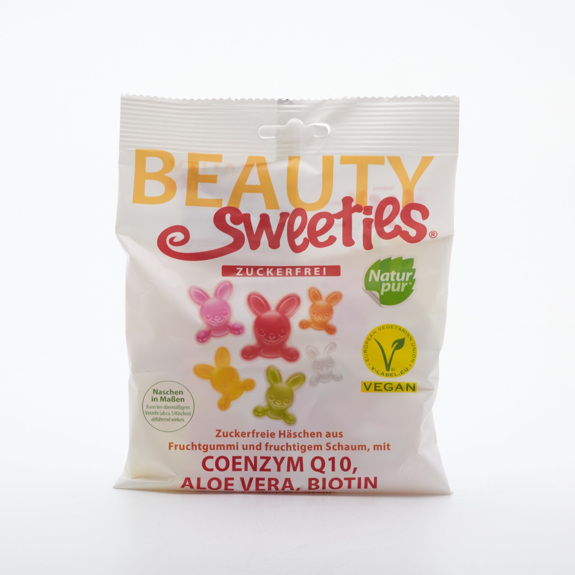 BeautySweeties - VEGAN zajkovia bez cukru z ovocného želé a ovocnej peny so šiestimi príchuťami – jahoda, malina, jablko, hruška a skvelé mango a mandarínka. Obsahujú Koenzým Q10, Aloe Vera, Biotín a sladidlá. Sú vhodné pre diabetikov ako aj pre tých, ktorí sa vyhýbajú cukrom.