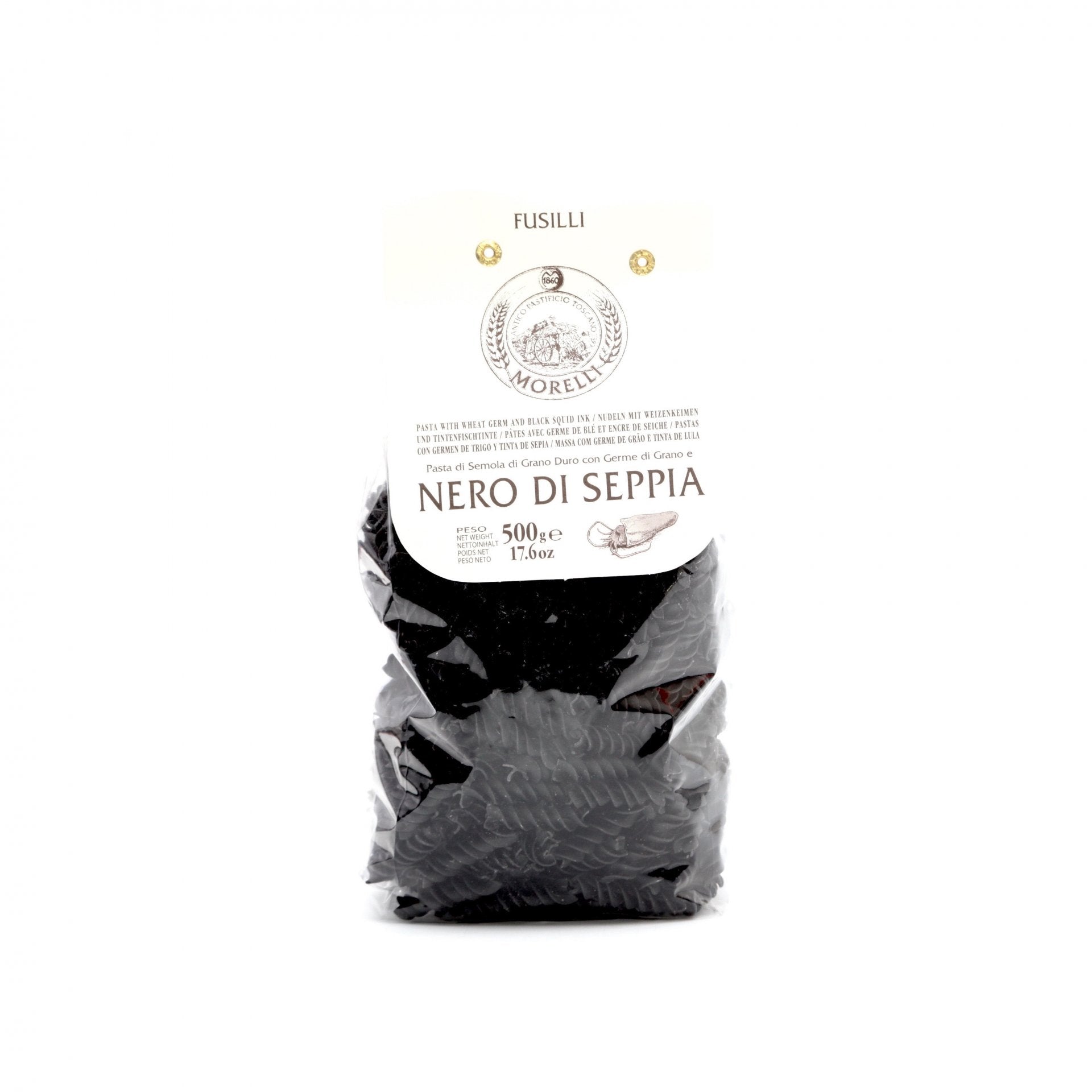 Cestoviny fusilli nero di seppia 500g.