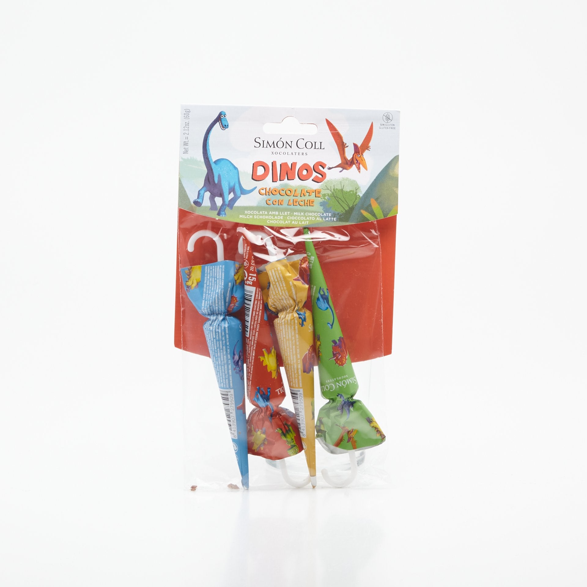 Balík štyroch dáždnikov s motívom dinosaurov. Deti si pochutia na krémovej a jemnej kvalitnej čokoláde. Obsahujú 32% kakaa a sú vyrobené podľa tradičného spôsobu praženia kakaových bôbov.