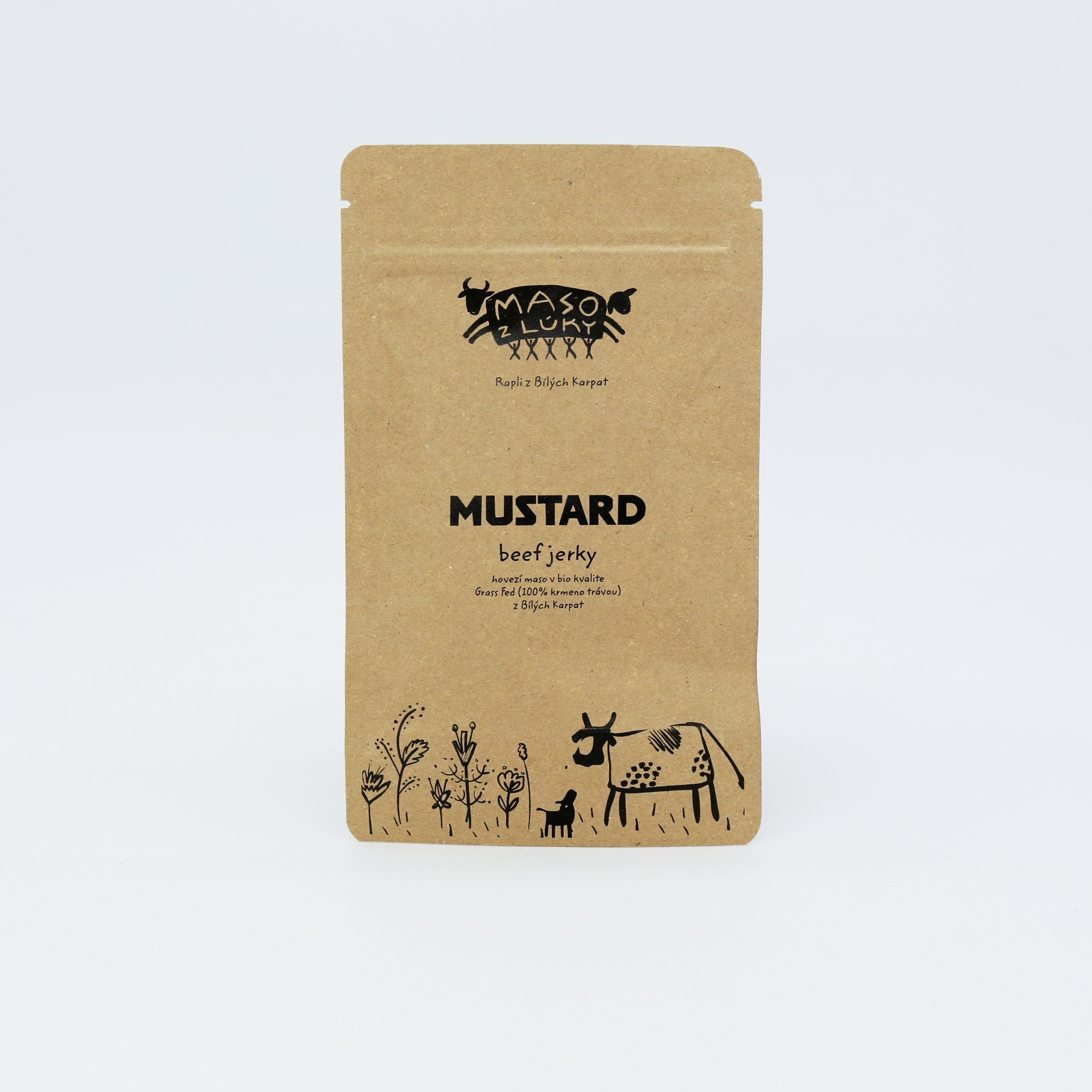 Jerky jsou vyrobeny z vyzrálého BIO hovězího masa. Grass Fed (100% krmeno trávou) – oblast Bílých Karpat Na 100 g sušeného masa bylo použito cca 260 g syrového masa.