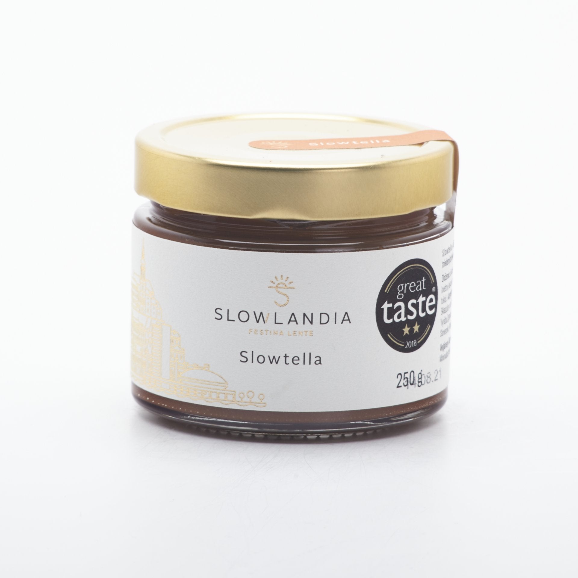 Slowtella je jemný krém z čerstvo pražených výberových lieskovcov (66%) a kvalitného BIO kakaa z Peru. Je pomaly a šetrne vyrobená na Slovensku. Neobsahuje palmový olej. Je bez mlieka a dokonca bez sójového lecitínu. Prisladená je len jemne cukrom z kokosových kvetov z Indonézie. Ocenená dvoma hviezdami Great Taste 2018 a zlatou medialou International Chocolate Awards 2020.